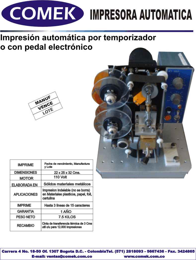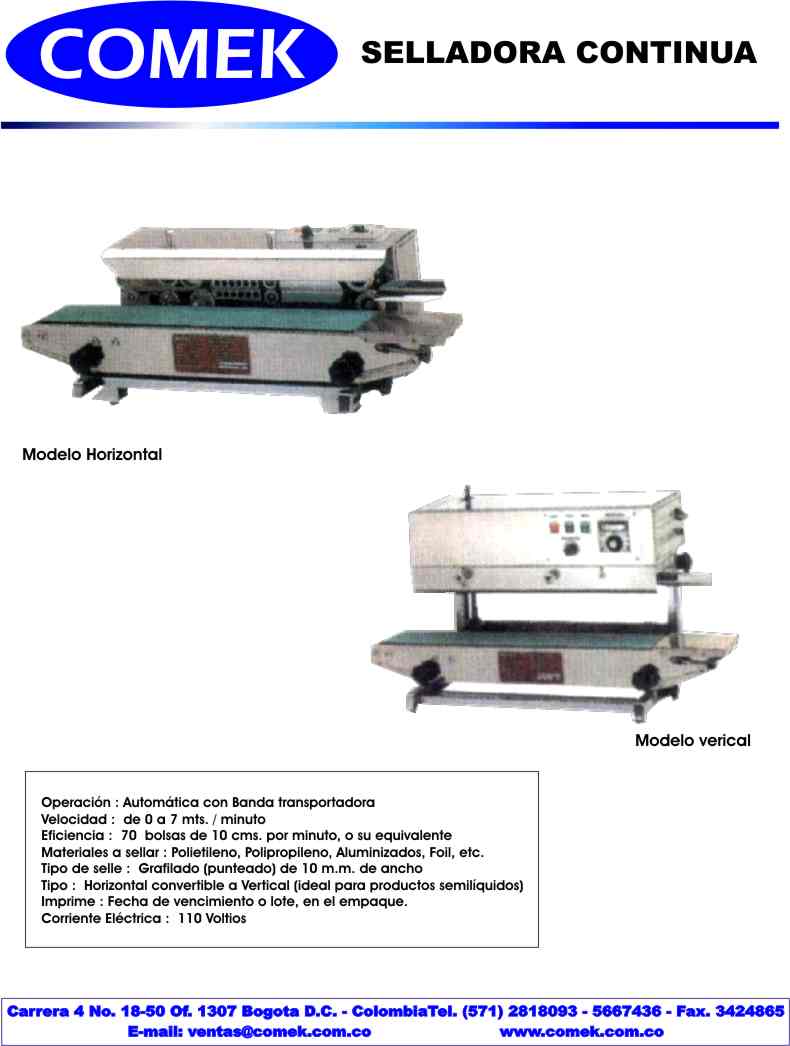 Correo: ventas@comek.com.co